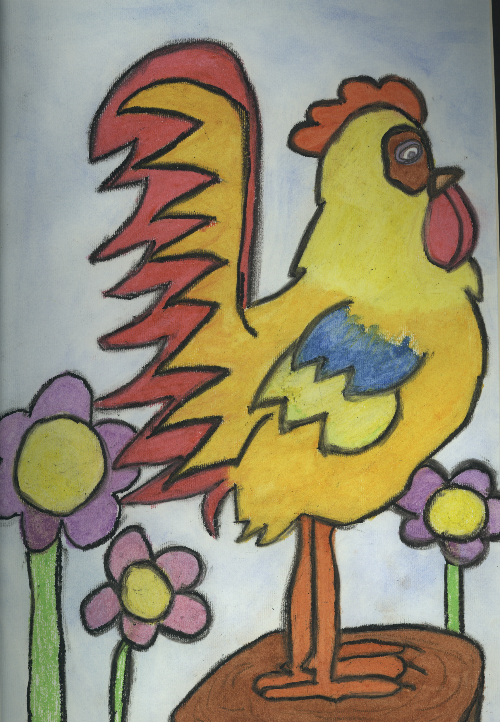 Oil Pastel Rooster On Post