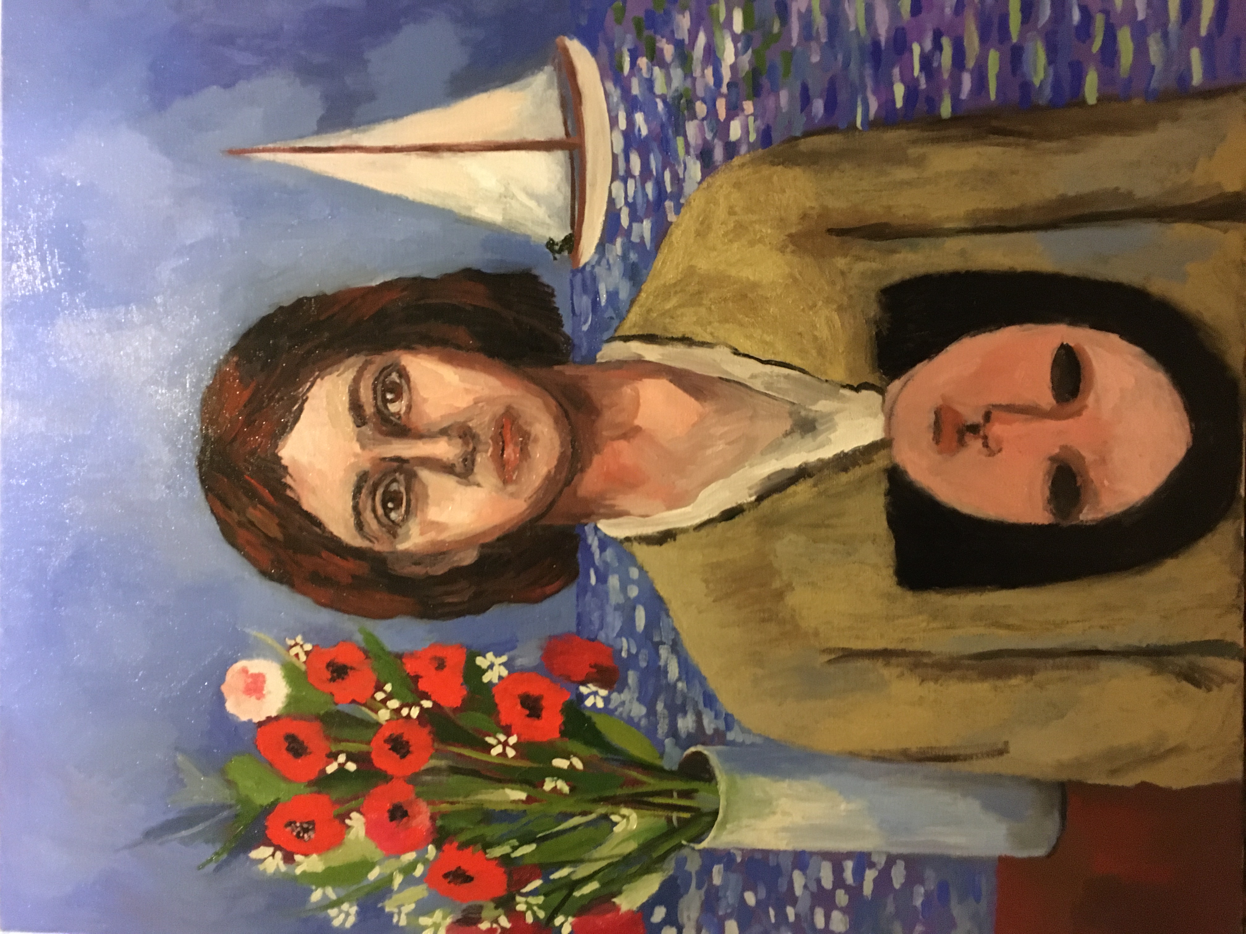 Woman, Flowers and Sea