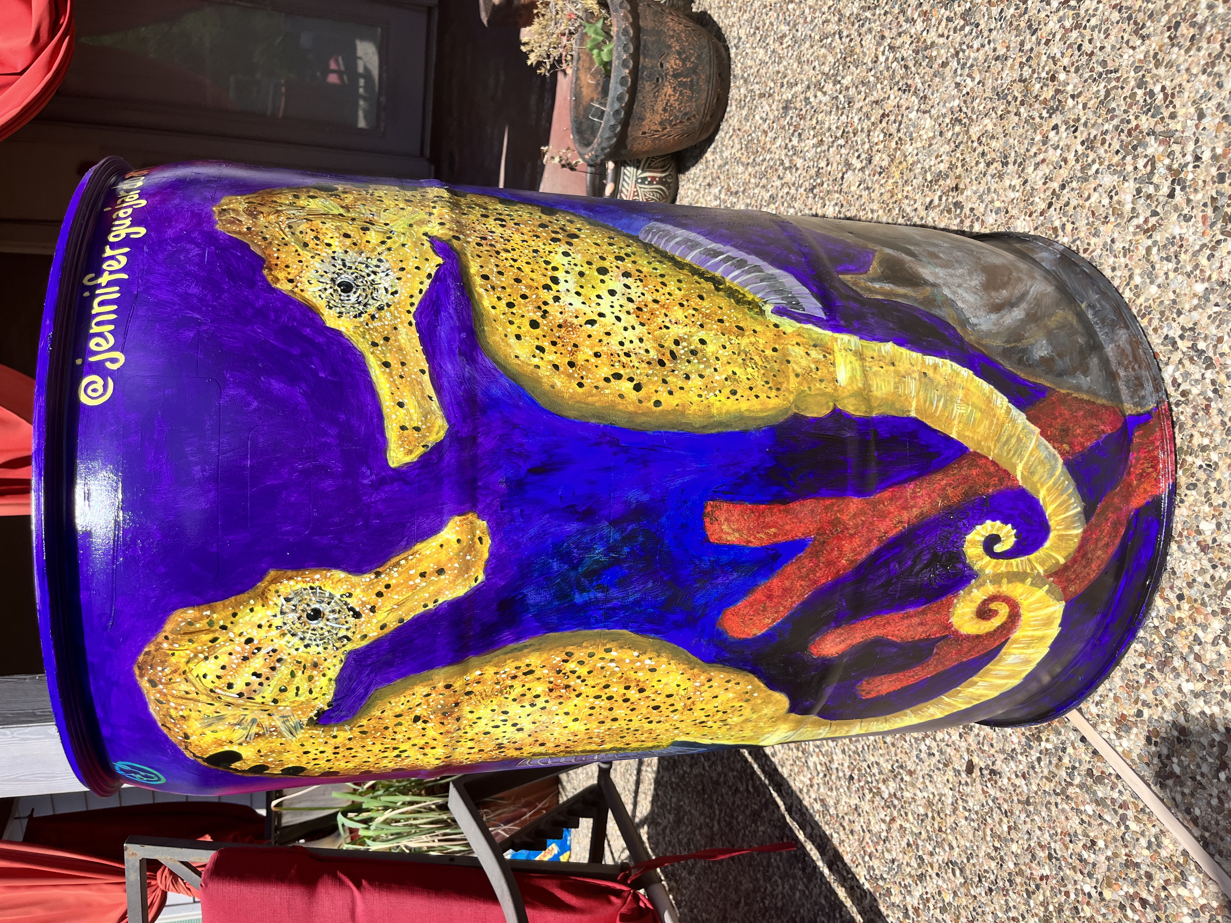 Acrylic on trash barrel