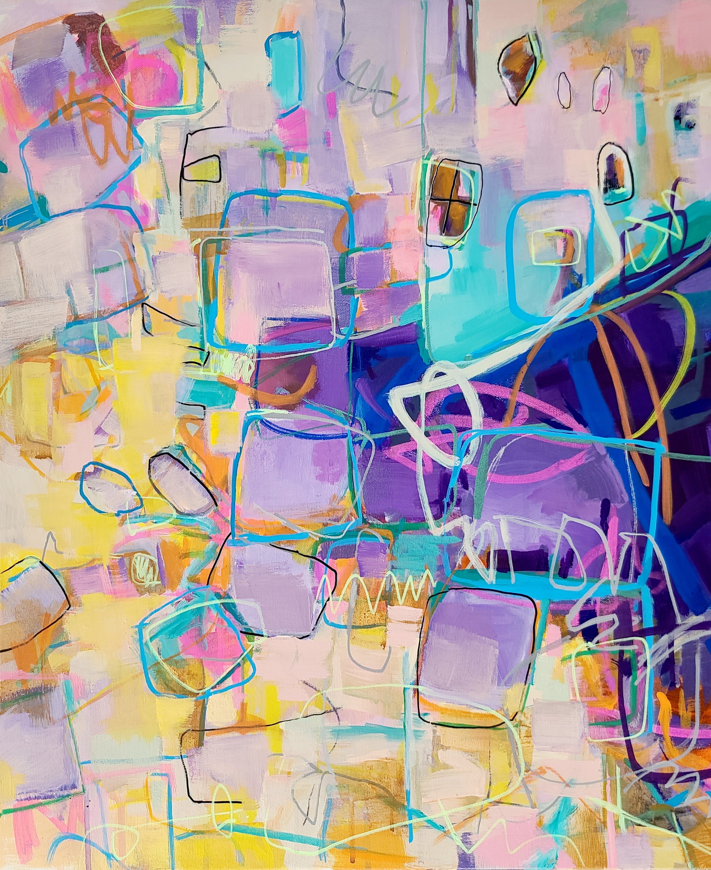 Woodblock, Mixed Media on Painted Canvas